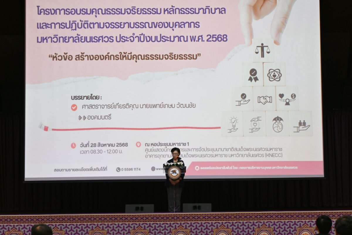 โครงการอบรมคุณธรรมจริยธรรม หลักธรรมาภิบาลและการปฏิบัติตามจรรยาบรรณของบุคลากรมหาวิทยาลัยนเรศวร ประจำปีงบประมาณ พ.ศ.2568