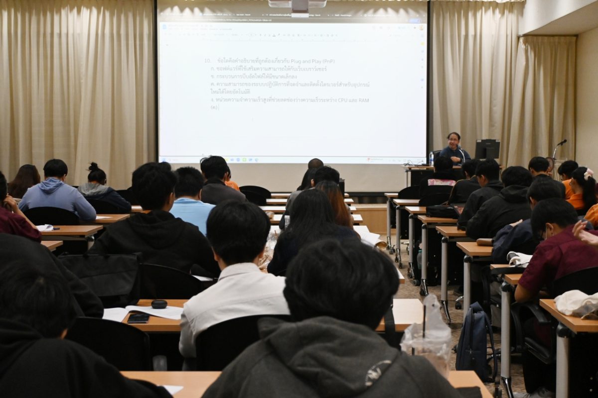 CITCOMS จัดกิจกรรมติวสอบมาตรฐานวิชาชีพไอที (Information Technology Professionals Examination : ITPE) ให้แก่น้องๆ นิสิต ที่จะเข้ารับการสอบ ITPE ระดับ IP ในวันที่ 26 ตุลาคม 2568 โดยการอบรมในครั้งนี้ ได้รับเกียรติจากอาจารย์ภาณุพงศ์ สอนคม อาจารย์ประจำคณะวิศวกรรมศาสตร์ มหาวิทยาลัยนเรศวร เป็นวิทยากรให้ความรู้เกี่ยวกับการสอบ การทบทวนเนื้อหาทางด้าน Technology ได้แก่ พื้นฐานระบบต่างๆ การเขียนโปรแกรม โครงสร้างข้อมูล ความมั่นคงปลอดภัยฯลฯ การทบทวนเนื้อหาทางด้าน Strategy ได้แก่ ระบบงานในองค์กร กลยุทธ์ทางระบบฯลฯ และการทบทวนเนื้อหาทางด้าน Management ได้แก่ การจัดการโครงการ การทำข้อสอบจำลองฯลฯ เพื่อให้น้องๆ ได้มีความพร้อมก่อนการสอบ โดยจัดให้มีการอบรมเมื่อวันที่ 22 และ 24 ตุลาคม 2568 ณ ห้อง Main Conference ชั้น 1 อาคาร CITCOMS