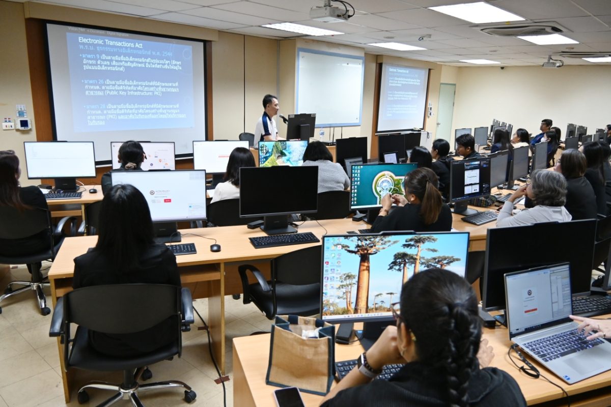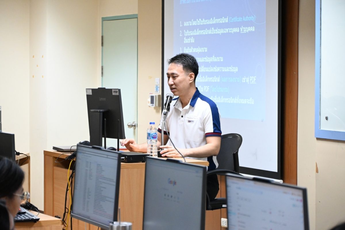 CITCOMS จัดการอบรมหลักสูตร “การใช้งานระบบงานสารบรรณอิเล็กทรอนิกส์ (NU e-Document) ผ่านเครือข่าย (ส่วนการลงนามอิเล็กทรอนิกส์)” ให้ผู้ปฏิบัติงานด้านงานสารบรรณของหน่วยงาน ณ ห้องปฏิบัติการคอมพิวเตอร์ 210 ชั้น 2 อาคาร CITCOMS เพื่อให้ผู้เข้ารับการอบรมได้เรียนรู้ขั้นตอนการลงนามอิเล็กทรอนิกส์ (e-Signature) การเกษียณเอกสาร การกำหนดค่าเอกสาร การประทับตรารับเอกสาร รวมถึงการส่งเอกสารต่อ เพื่อสนับสนุนให้ทุกหน่วยงานมีการใช้งานระบบงานสารบรรณอิเล็กทรอนิกส์ (NU e-Document) อย่างเด็มรูปแบบอย่างมีประสิทธิภาพ และให้เป็นไปตาม ประกาศมหาวิทยาลัยนเรศวร เรื่อง หลักเกณฑ์และวิธีการใช้ลายมือชื่ออิเล็กทรอนิกส์ของมหาวิทยาลัยนเรศวร (ประกาศ ณ วันที่ 7 มกราคม 2568)