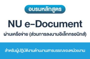 ขอเชิญผู้ปฏิบัติงานด้านงานสารบรรณของหน่วยงาน เข้ารับการอบรมหลักสูตร “การใช้งานระบบงานสารบรรณอิเล็กทรอนิกส์ (NU e-Document) ผ่านเครือข่าย (ส่วนการลงนามอิเล็กทรอนิกส์)”