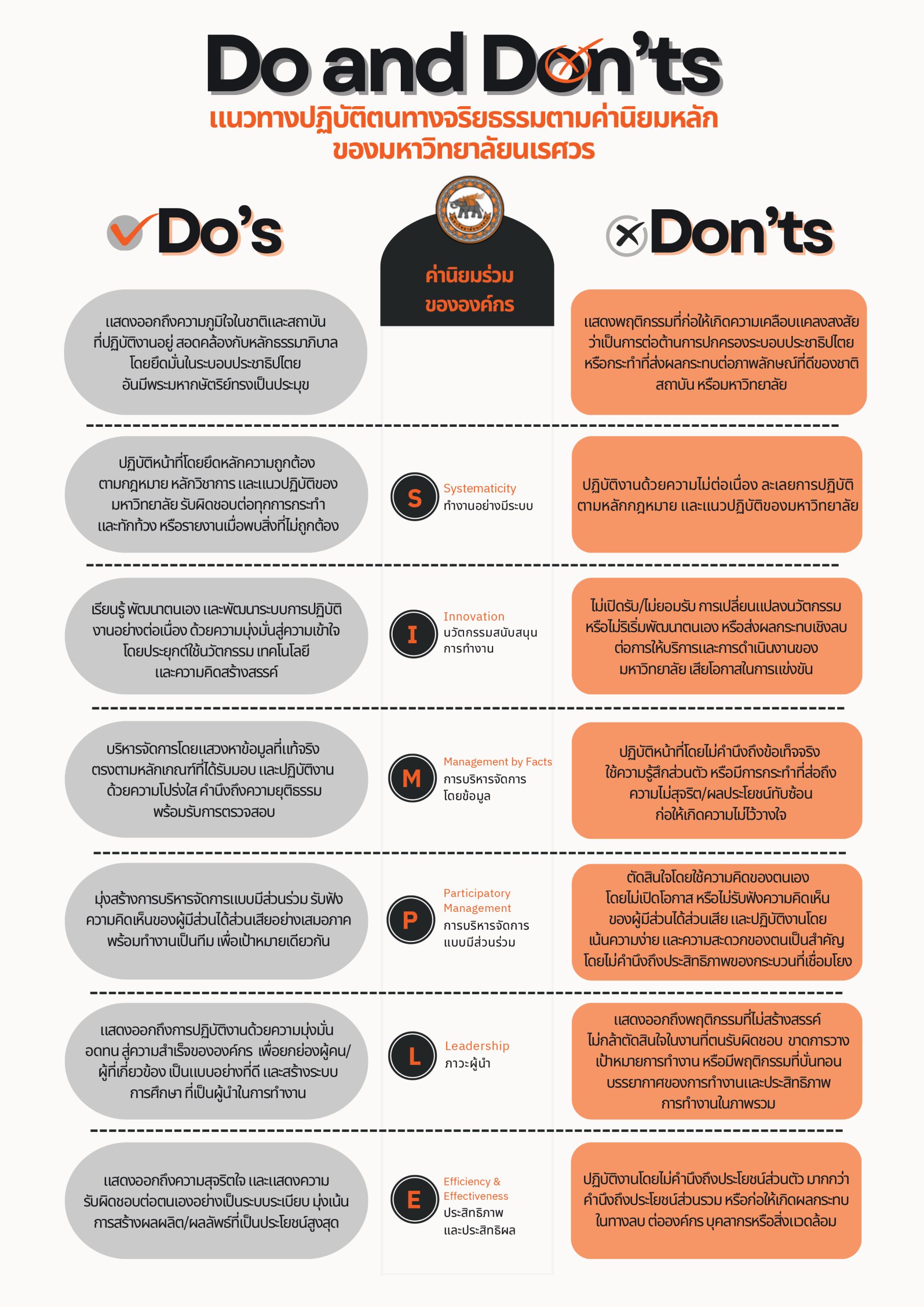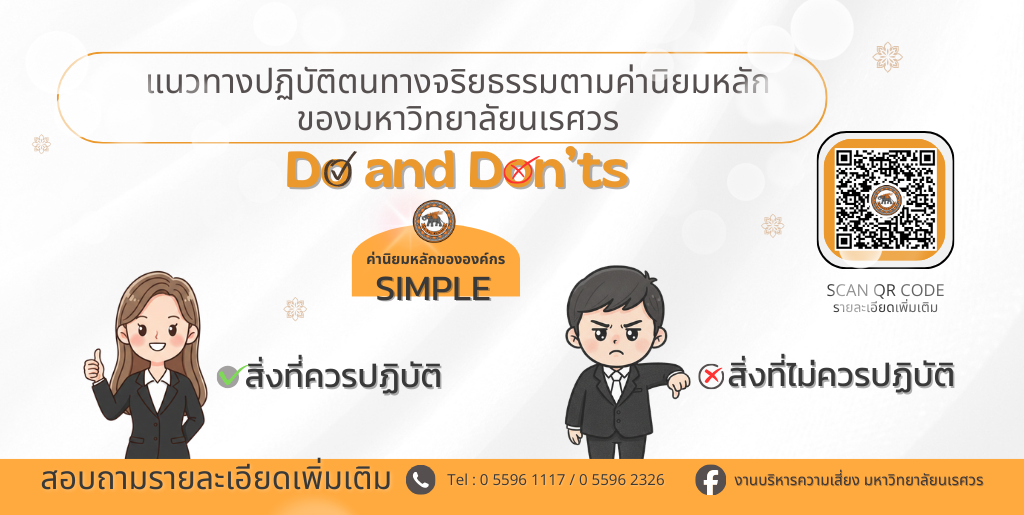 ประกาศมหาวิทยาลัยนเรศวร เรื่อง แนวทางปฏิบัติตนทางจริยธรรมกับค่านิยมของมหาวิทยาลัยนเรศวร (Do and Don’t)