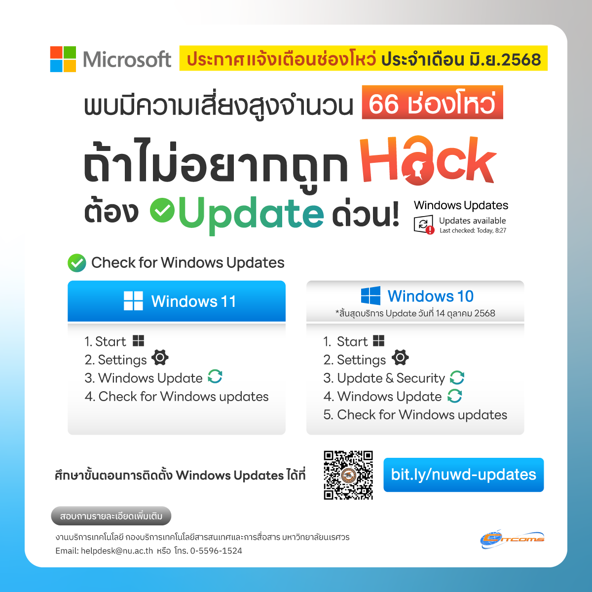 หมายเลขโทรศัพท์ 0-5596-1524 หรือ e-Mail : helpdesk@nu.ac.th